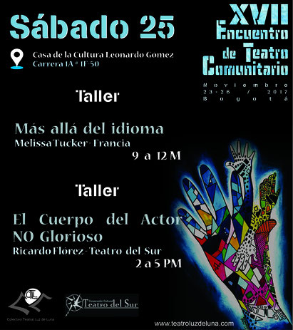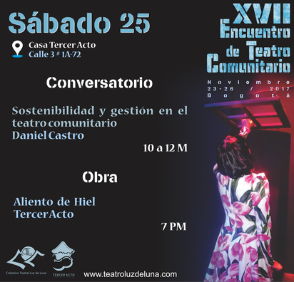 24. noviembre 2017 Sábado de Teatro Comunitario Tendremos programación de talleres a lo largo del día, para concluir con la función del grupo Tercer Acto. Así que ahí tienen para que escojan. tagPlaceholderEtiquetas: