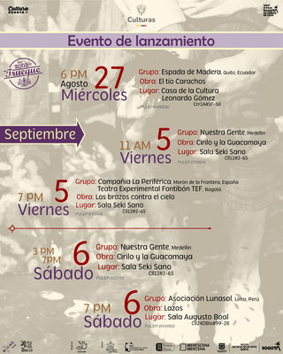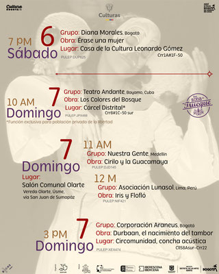 Serán dos semanas cargadas de diferentes lenguajes de las artes escénicas, donde el Encuentro, además de visitar algunas salas concertadas, también descentraliza su oferta llegando a barrios populares, veredas, librerías y la Cárcel Distrital.