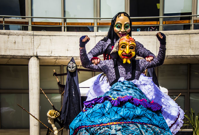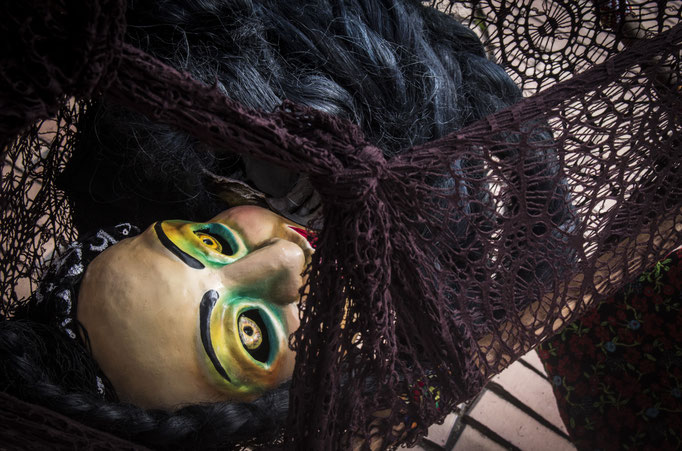 Las Alegrías invaden el espacio para dar inicio a un rito por la vida y la muerte, sus colores se mecen desde lo alto formando danzas al ritmo de sonidos latinos y de sus rostros sobresalen los pliegues del tiempo.